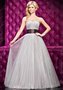 По-голливудски роскошное вечернее платье серебристо-белого цвета с пышной плиссированной юбкой и атласным черным поясом поможет вам стать звездой любого торжества. Элегантный корсет с открытой зоной декольте и тончайшими бретелями привлекает внимание к бюсту. Наряд выгодно подчёркивает талию и зрительно вытягивает силуэт.