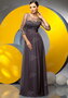 Благородное платье из дымчатого шифона с модной деталью – прозрачной маечкой и рукавами длиной 3/4. Особенно эффектно на полупрозрачном фоне смотрятся вышитые бисером и мелкими бусинами узоры. Линия талии подчёркнута широким поясом. Длинная струящаяся юбка окутывает фигуру и ниспадает до самого пола. Платье выглядит очень изысканно и утончённо.