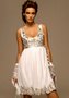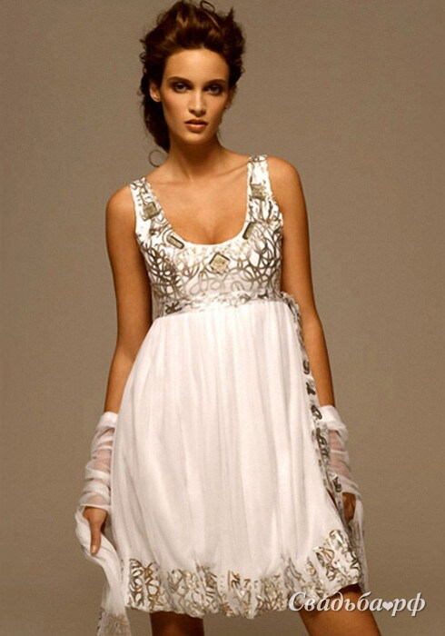 Оригинальное платье от лучших испанских дизайнеров будет уместно смотреться на любом торжестве. Представленная модель с открытой зоной декольте и широкими бретелями декорирована сеткой с золотистой аппликацией. Короткая юбка свободного кроя придаёт наряду лёгкость и женственность. Поясок подчёркивает талию.