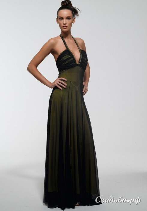 Сногсшибательное вечернее платье от ведущих испанских дизайнеров создано для самых стильных красавиц. Соблазнительная зона декольте с американской проймой подчёркнута полосой сверкающих камней. Полупрозрачная драпировка на груди зрительно увеличивает бюст. Длинная юбка с изящными складками струится до самого пола.