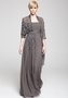 Шикарное вечернее платье от знаменитого бразильского бренда Mabel Magalhaes необычного серого цвета. Прямой лиф, драпированный мелкой складкой, подчеркнутая линия талии небольшим пояском, сверху накидка из легкого шифона, расшитая камнями различной величины. Справа на юбке асимметричная сборка, также украшенная россыпью бусин и страз.