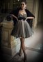 Шикарное вечернее платье комбинированного цвета. Экзотическое вечернее платье средней длины классического А-силуэта. Лиф кремового цвета в форме сердечка декорирован кружевом и камнями черного цвета, в этой же цветовой гамме выдержан и весь наряд. Линия талии искусно украшает бант из широкой атласной ленты. Пышная многослойная юбка в мелкую складку завершает образ.