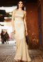 Элегантное закрытое вечернее платье с кристаллами. Строгий вырез-лодочка в сочетании с отделанными кристаллами короткими рукавами смотрится очень изысканно и нежно одновременно. Облегающий силуэт позволяет выгодно продемонстрировать все женственные изгибы и линии фигуры. Юбка-годе роскошными фалдами струится вдоль ножек.
