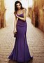 Закрытое вечернее платье с кристаллами насыщенного фиолетового цвета. Зона декольте и плечи кокетливо прикрыты украшенным кристаллами воротом-сеткой. Лиф – открытый, фигурный. Длинная, расширенная книзу юбка с высоким разрезом предоставляет прекрасную возможность продемонстрировать стройные ножки. Настолько изысканный наряд достоин настоящей принцессы!