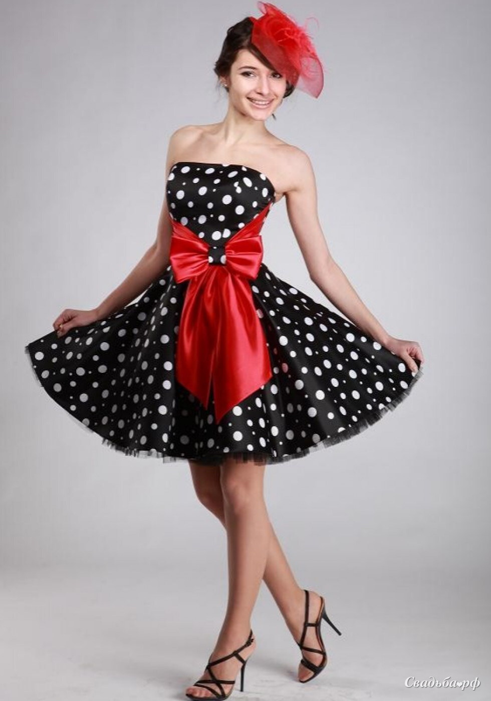 Платье с пышной юбкой и большим бантом на поясе.