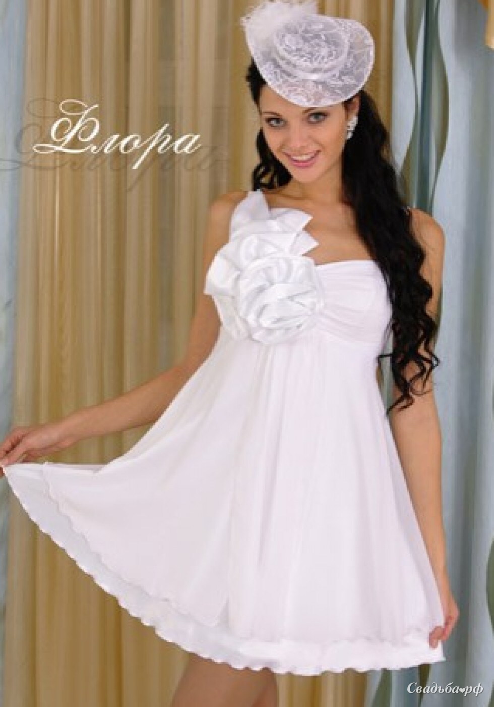 элегантное шифоновое платье, лиф украшен большим цветком.