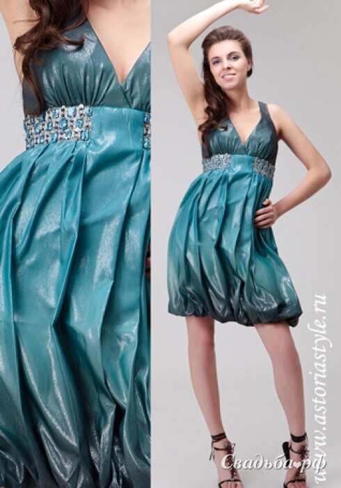 Вечернее платье с широкими бретелями и V-образным вырезом на груди дополнено широким поясом со сверкающими камнями. Объёмная юбка с вертикальными складками доходит до середины бедра. Наряд мягко скроет недостатки фигуры и подчеркнёт достоинства. Размеры в наличии: 42, 44. Звоните по телефону 911-0860, ежедневно с 11:00 до 20:00.