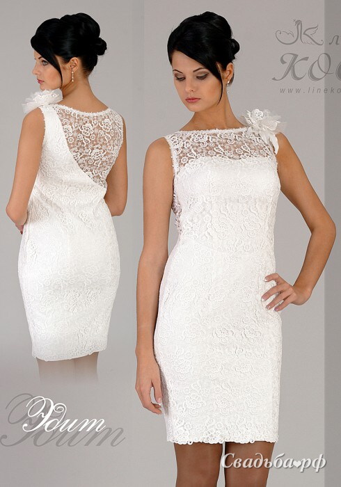 Элегантное свадебное платье с ассиметричной вставкой на спине и расшитой вручную сеткой никого не оставит равнодушным. Крупный бант на плече придаёт этому наряду особый шарм. Облегающая модель доходит до середины бедра и позволяет невесте продемонстрировать её прекрасные ножки. Размеры в наличии - 42, 44, 46.