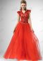 Эпатажное вечернее платье с рукавами-крылышками и воротничком поможет Вам оказаться в центре любого торжества. Кружевной верх наряда гармонично сочетается с пышной юбкой из полупрозрачной ткани. Талия и корсет украшены сверкающими камнями. Эта роскошная модель от именитого бренда Pauline выгодно подчёркивает достоинства фигуры.