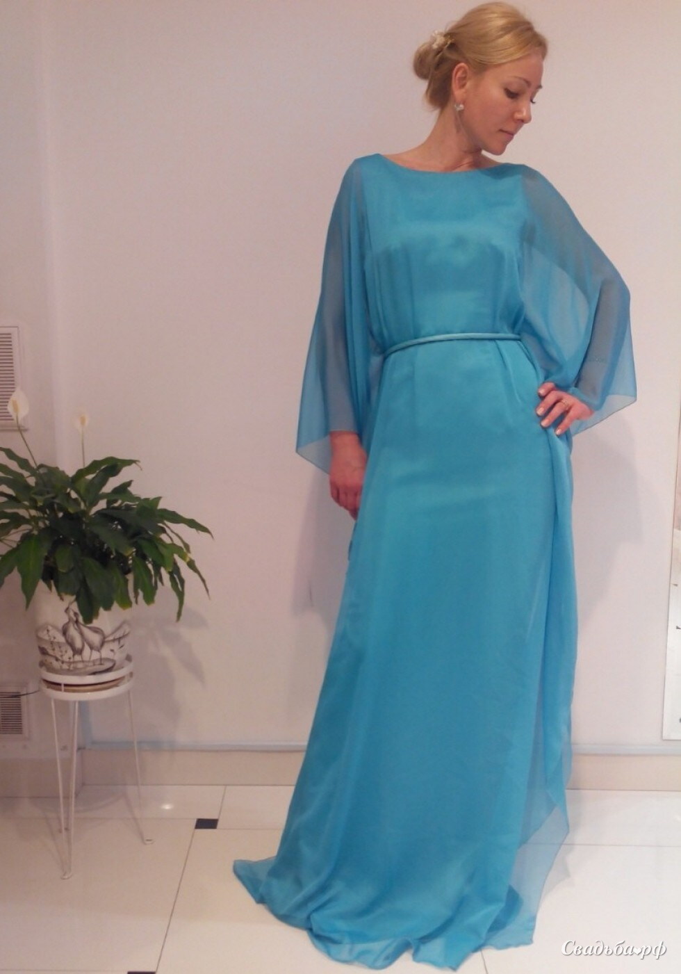 Легкое шифоновое платье со свободными рукавами и тонким поясом.