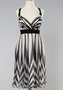 Элегантное вечернее платье из легкого шифона с оригинальным чёрно-белым принтом. Глубокий V-образный вырез плавно переходит в бретели. Под грудью проходит широкий пояс, украшенный объёмной тканевой розой. Юбка средней длины мягко струится вдоль фигуры. Уточнить информацию о наличии платья Вы можете, позвонив в наш салон. Тел.: (495) 691-6169