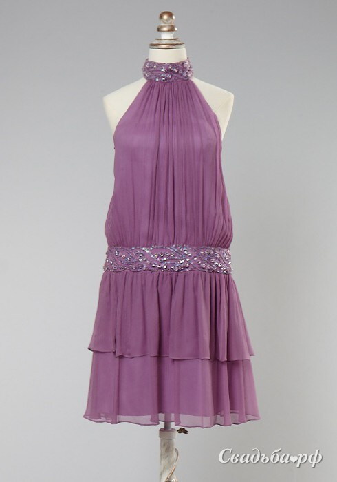 Романтичное вечернее платье в стиле ретро из шифона. Воротник-стойка задекорирован вышивкой из бисера и бусин. Лиф и корсет сформированы свободной драпировкой. Линия бёдер выделена широким поясом, также расшитым бисером. Юбка состоит из двух лёгких оборок. Уточнить информацию о наличии платья Вы можете, позвонив в наш салон. Тел.: (495) 691-6169