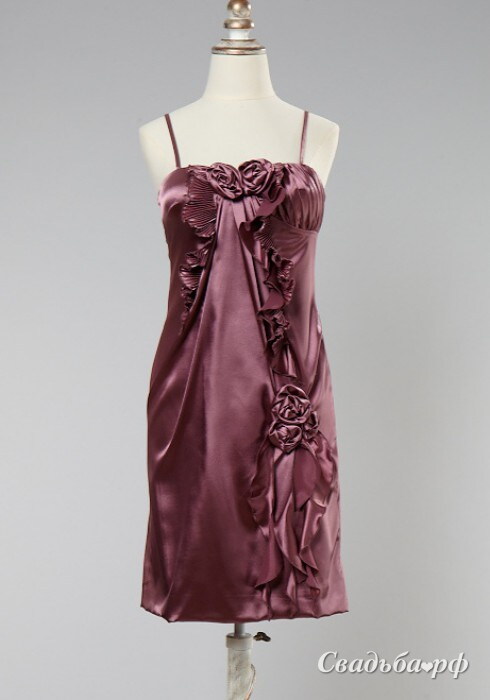 Изысканное вечернее платье. Тонкие бретели эффектно подчёркивают изящество линии плеч. Лиф и подол платья украшены оригинальной асимметричной драпировкой, кокетливыми оборками и объёмными цветами из ткани. Уточнить информацию о наличии платья Вы можете, позвонив в наш салон. Тел.: (495) 691-6169