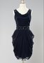 Изысканное вечернее платье с эффектно выделенной линией талии. Вырез украшен элегантным хомутом. Бретели задекорированы небольшими композициями из бусин. Широкий пояс также расшит бусинами и крупными стразами. Юбка оригинального покроя средней длины. Уточнить информацию о наличии платья Вы можете, позвонив в наш салон. Тел.: (495) 691-6169