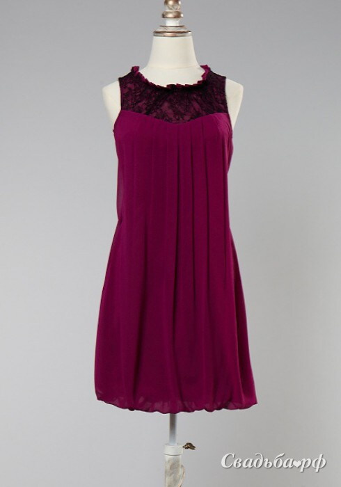 Стильное шифоновое платье свободного покроя. Округлый вырез отделан кружевом чёрного цвета с красивыми цветочными узорами. Многочисленные мягкие склады берут начало у самого лифа и красиво струятся вдоль фигуры. Наряд идеально подойдёт для любого торжества. Уточнить информацию о наличии платья Вы можете, позвонив в наш салон. Тел.: (495) 691-6169