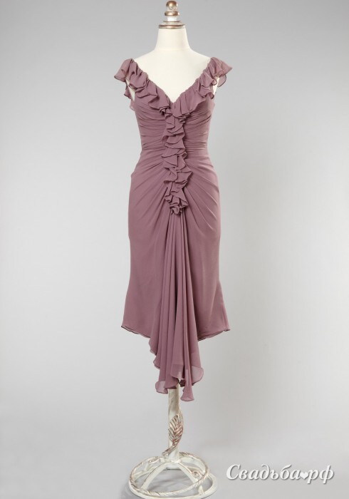 Роскошное вечернее платье с глубоким V-образным вырезом. По всей длине платье украшено драпировкой. По контуру выреза проходят лёгкие оборки, которые соединяются в центре лифа, спускаются вдоль фигуры и превращаются в каскад мягких волн юбки. Уточнить информацию о наличии платья Вы можете, позвонив в наш салон. Тел.: (495) 691-6169
