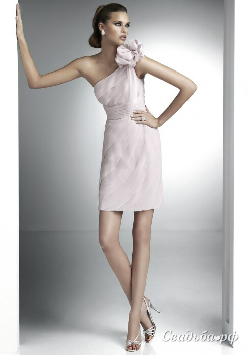 Элегантный наряд от испанского бренда Pronovias создан для утончённых модниц. Легко драпированное платье с открытой зоной декольте и крупным цветком на плече смотрится сногсшибательно! Широкий пояс выгодно подчёркивает талию. Облегающая юбка прямого покроя игриво приоткрывает колени. В таком платье нежного розового цвета Вы будете неотразимы.