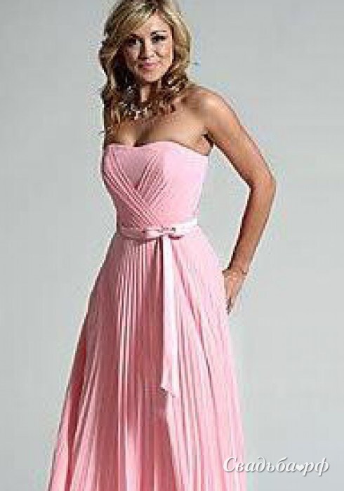 Потрясающее вечернее платье из нежно-розового шифона создано канадскими дизайнерами для самых романтичных и нежных натур. Изящный корсет с открытой зоной декольте зрительно увеличивает бюст. Контрастный пояс с кокетливым бантиком выгодно подчёркивает талию. Длинная гофрированная юбка придаёт модели особый шарм и лёгкость.