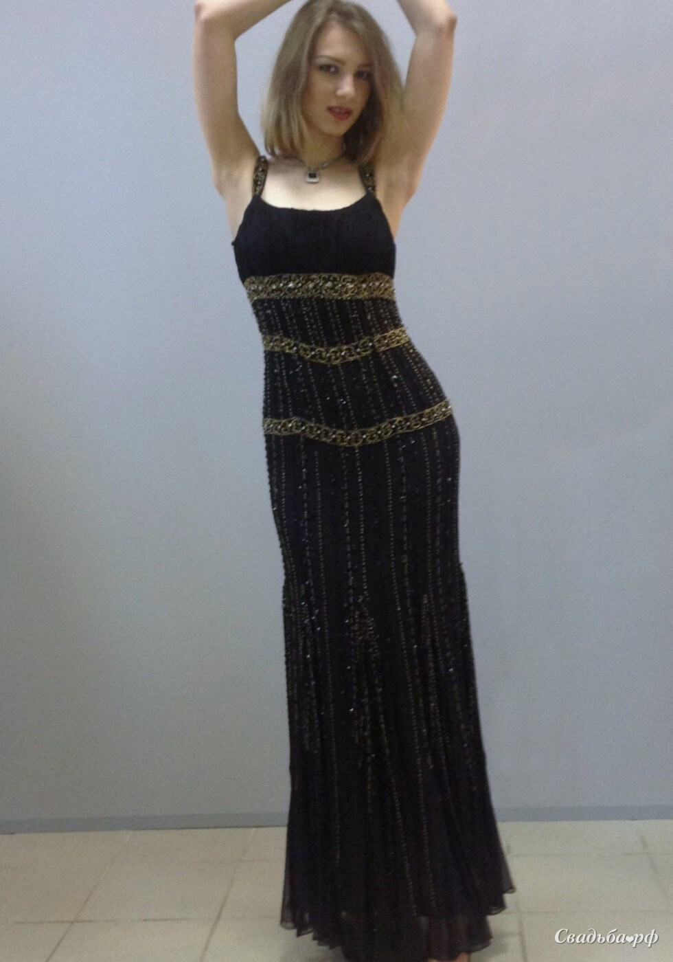 Шикарное платье в черно-золотом!!! Ткань мягко облегает фигуру, бисерные дорожки зрительно удлиняют силуэт. Платье подходит для очень торжественного выхода!