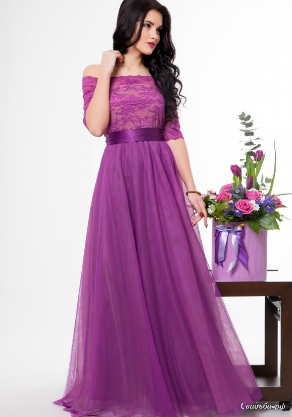 Нежное платье из тонкого кружева в сочетании с евротюлем.