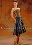 Великолепное вечернее платье в изысканном сочетании элегантного синего и роскошного золотистого цветов. Прямой открытый лиф и строгий корсет выполнены из плотной ткани с красивыми золотистыми узорами. Расширенная книзу однотонная синяя юбка по краю отделана золотистым кантом. Большой выбор свадебных аксессуаров и свадебной обуви.