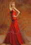 Роскошное вечернее платье чувственного красного цвета. Открытый фигурный лиф и строгий корсет модели украшены изысканными кружевными элементами чёрного цвета. Линия бёдер выделена декоративным поясом с кружевом. Длинная, расширенная книзу юбка состоит из плотного атласного и тонкого фатинового слоёв. Большой выбор свадебных аксессуаров и свадебной обуви.