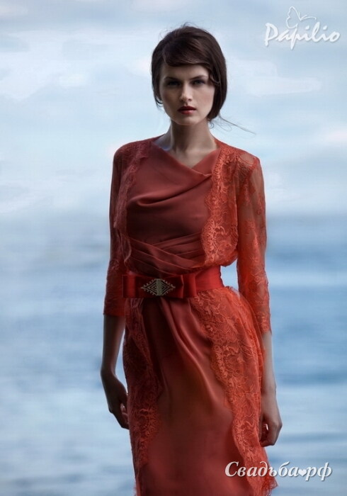 Изысканный наряд от известного белорусского бренда Papilio подойдёт для любого торжественного мероприятия. Платье со скромным вырезом-лодочкой и прямой юбкой деликатно скрывает недостатки фигуры и подчёркивает достоинства. Кружевной кардиган с рукавами 3/4 придаёт образу особый шик. Комплект дополнен широким поясом с бантом.