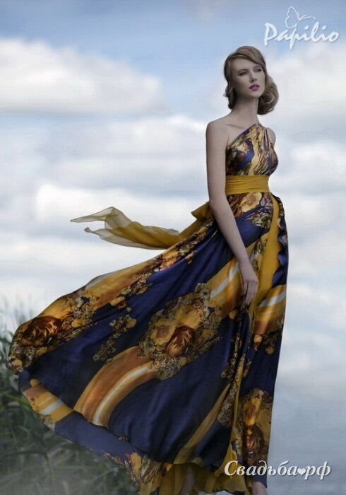 Восхитительное платье от известного белорусского бренда Papilio отличается воздушностью и безупречностью форм. Верх наряда дополнен ассиметричной бретелью. Талия подчёркнут широким поясом с бантом на пояснице. Длинная юбка свободного кроя придаёт образу женственность. Почувствуйте себя настоящей богиней!