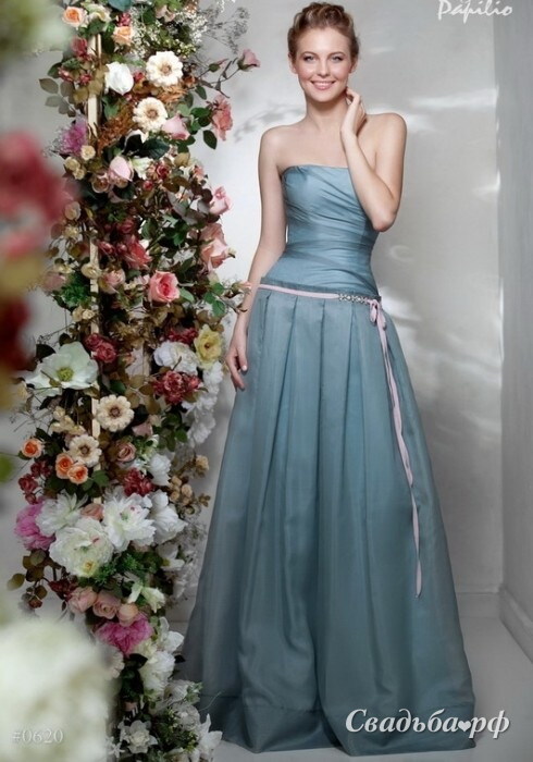 Роскошное платье от именитого белорусского бренда Papilio подойдёт для самого торжественного случая. Изящный корсет с открытой зоной декольте идеально садится по фигуре. Длинная юбка свободного кроя зрительно вытягивает силуэт. Граница корсета и юбки выделена контрастной лентой с миниатюрным бантом на бедре.