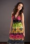 Изысканное вечернее платье с V-образным вырезом выполнено из ткани с ярким абстрактным принтом. Широкий чёрный пояс подчеркивает немного завышенную линию талии и делает силуэт ещё более стройным и изящным. Свободная неширокая юбка струится вдоль фигуры. Это элегантное платье подойдет на любое мероприятие.