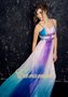 Нежное вечернее платье из натурального шёлка. Фигурный лиф, тонкие бретели, длинная широкая юбка помогают создать образ прекрасной феи. А две горизонтальные полосы, расшитые стразами (под грудью и по линии талии), делают этот образ более изысканным и утончённым. Изюминкой модели является необычная расцветка, чем-то напоминающая северное сияние.