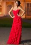 Эффектная шифоновая модель с длинной юбкой, состоящей из множества ярусов. Отстегивающаяся планка на спинке позволяет пустить шнуровку по голой спине. Отличная посадка этого вечернего наряда от лучших отечественных дизайнеров достигается благодаря шнуровке и облегченному корсету. Талия подчёркнута широким поясом с брошью.