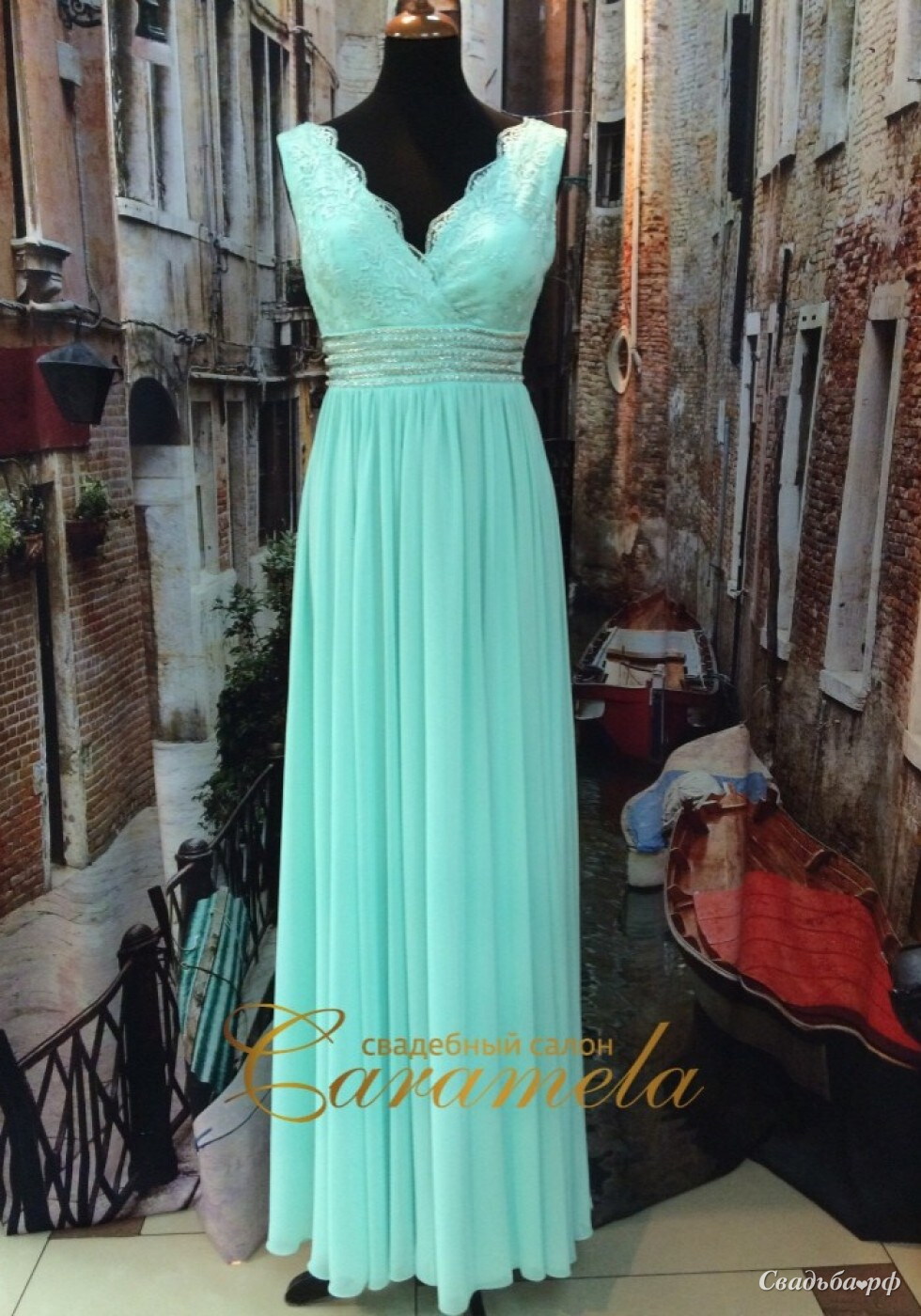 Мятное вечернее платье в пол. Отличный вариант на выпускной или на любое соответствующее мероприятие.