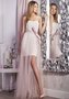 Оригинальное открытое короткое вечернее платье создано для кокетливых и стильных девушек. Талия подчёркнута широким поясом с крупным необычным бантом. Шикарный полупрозрачный шлейф придаёт образу оригинальность. В таком наряде можно смело демонстрировать свои великолепные ножки.