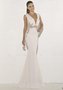 Элегантное вечернее платье силуэта «рыбка». Впереди эффектный глубокий вырез, верх дополнен широкими лямками. Спинка закрыта. Красиво облегающая юбка от середины бедра чуть расширяется к низу и переходит в небольшой шлейф. Великолепный акцент из полупрозрачной сетки и расшивки бисером в тон на талии никого не оставит равнодушным!