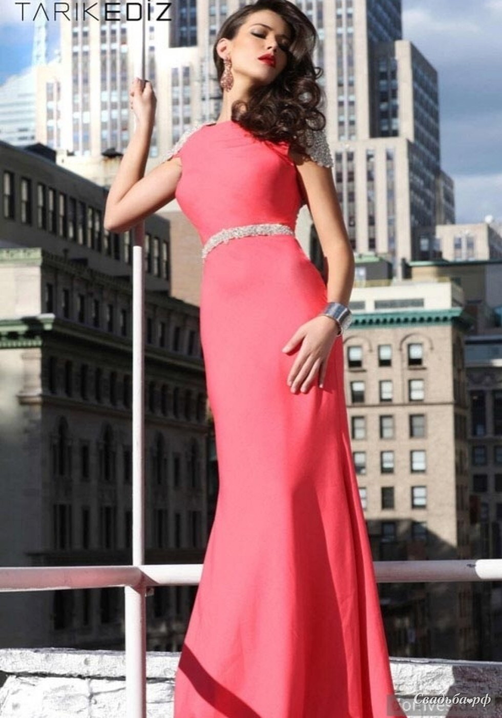 Роскошное вечернее платье, покоряющее своей женственностью. Силуэт «рыбка» позволяет подчеркнуть изящную фигуру. Впереди классический круглый вырез. Облегающая юбка дополнена небольшим шлейфом. Изюминкой модели является оригинальная расшивка кристаллами Swarovski. Красивые рукавчики-погоны, обрамленное декольте на спинке и тонкий поясок на талии сверкают, придавая наряду неповторимость. Материал джерси невероятно приятен к телу. Великолепный наряд, достойный суперзвезды!
