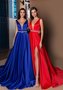 А-силуэтное атласное платье с глубоким вырезом
