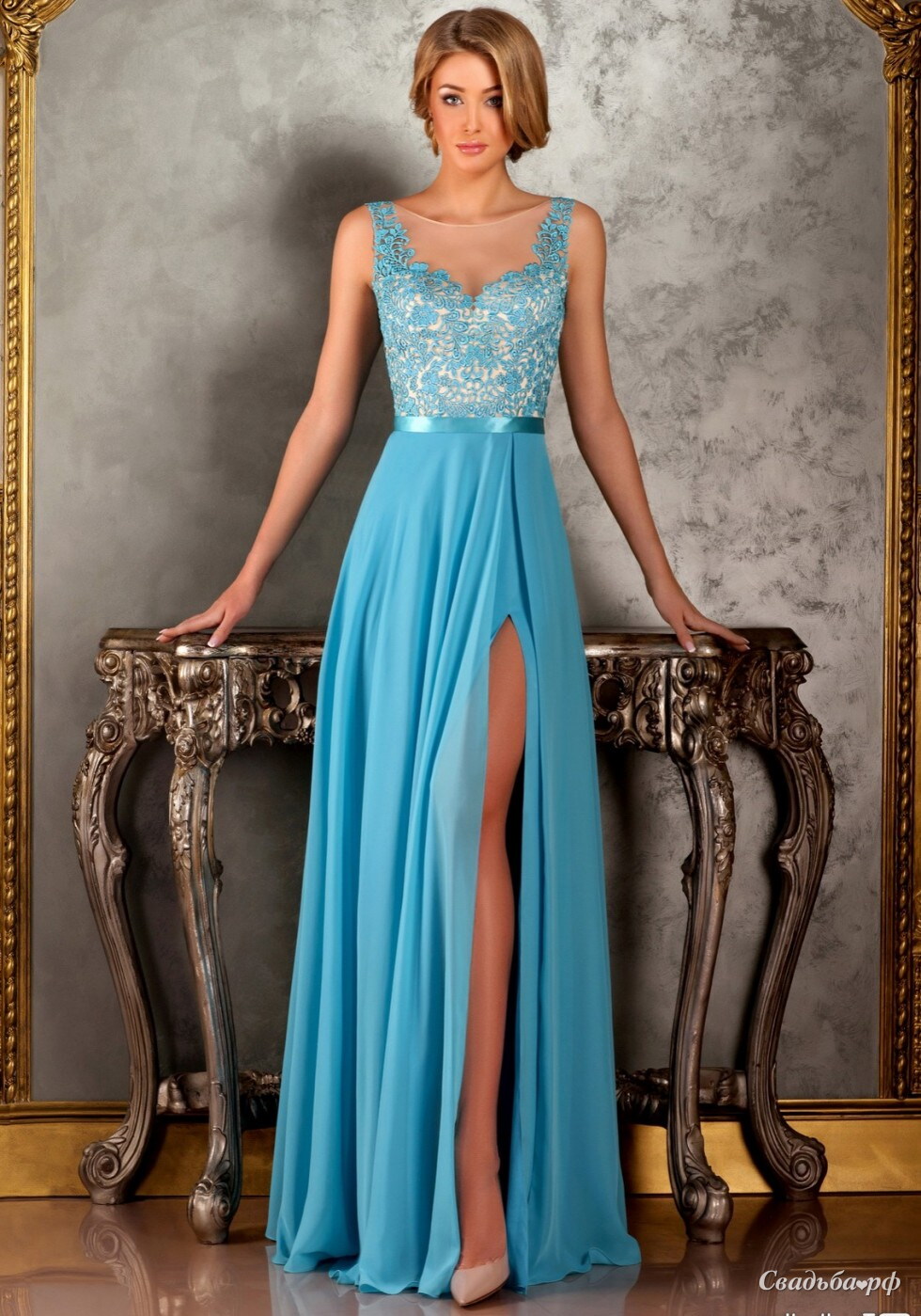 Длинное вечернее платье с разрезом по ноге. Кружевной корсет на телесной основе. Это платье Вы можете приобрести в нашей галерее (1 этаж). www.dressforyou.ru