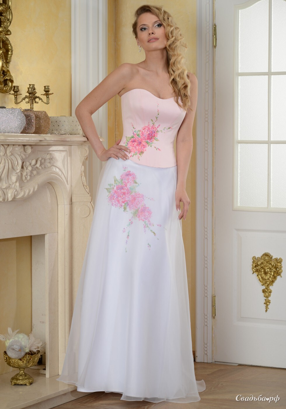 Вечернее платье "Аманда" нежно-розового оттенка, шикарная роспись на корсете и юбке. В таком платье вы будете выглядеть нежно и благородно.