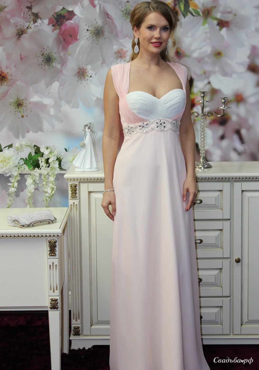 Шикарное платье нежно-розового оттенка легко может стать идеальным нарядом невесты, однако, и в качестве вечернего туалета выглядит просто потрясающе.
