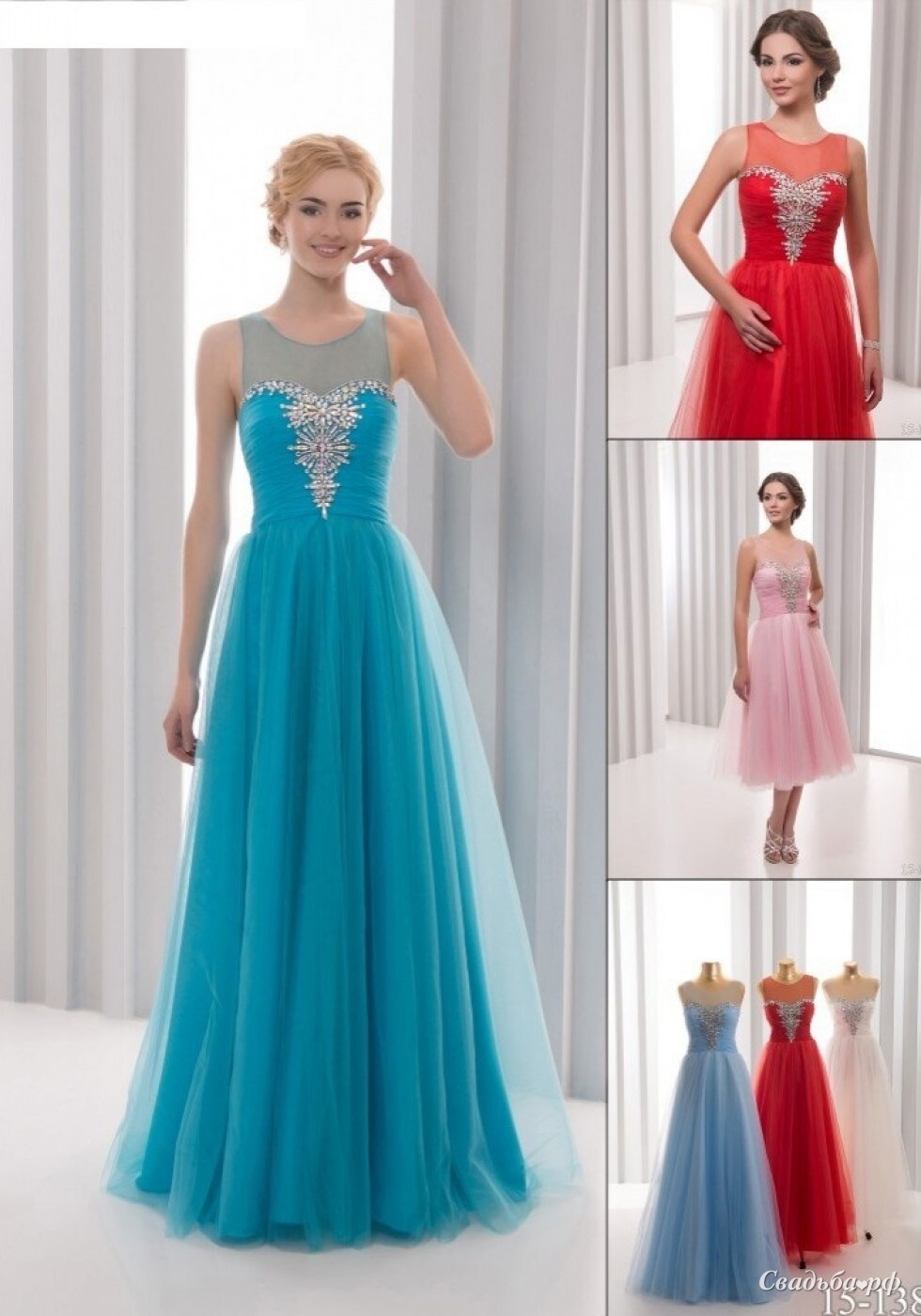 Вечернее платье из мягкого фатина. Платье шьется в двух вариантах: в коротком и длинном. Платье по лифу украшено стразовой аппликацией. Сзади данная модель на корсетной шнуровочке, что обеспечивает идеальную посадку по фигуре.