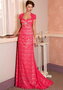 Элегантное платье из кружева представлено именитым брендом Valentina Gladun. Под грудью разместилось украшение из стекляруса. Открытая зона декольте гармонично сочетается с короткими рукавчиками. Наряд мягко подчёркивает женственный силуэт. Длинная юбка струится до самого пола и переходит в небольшой шлейф. Изысканное платье для настоящей леди.