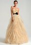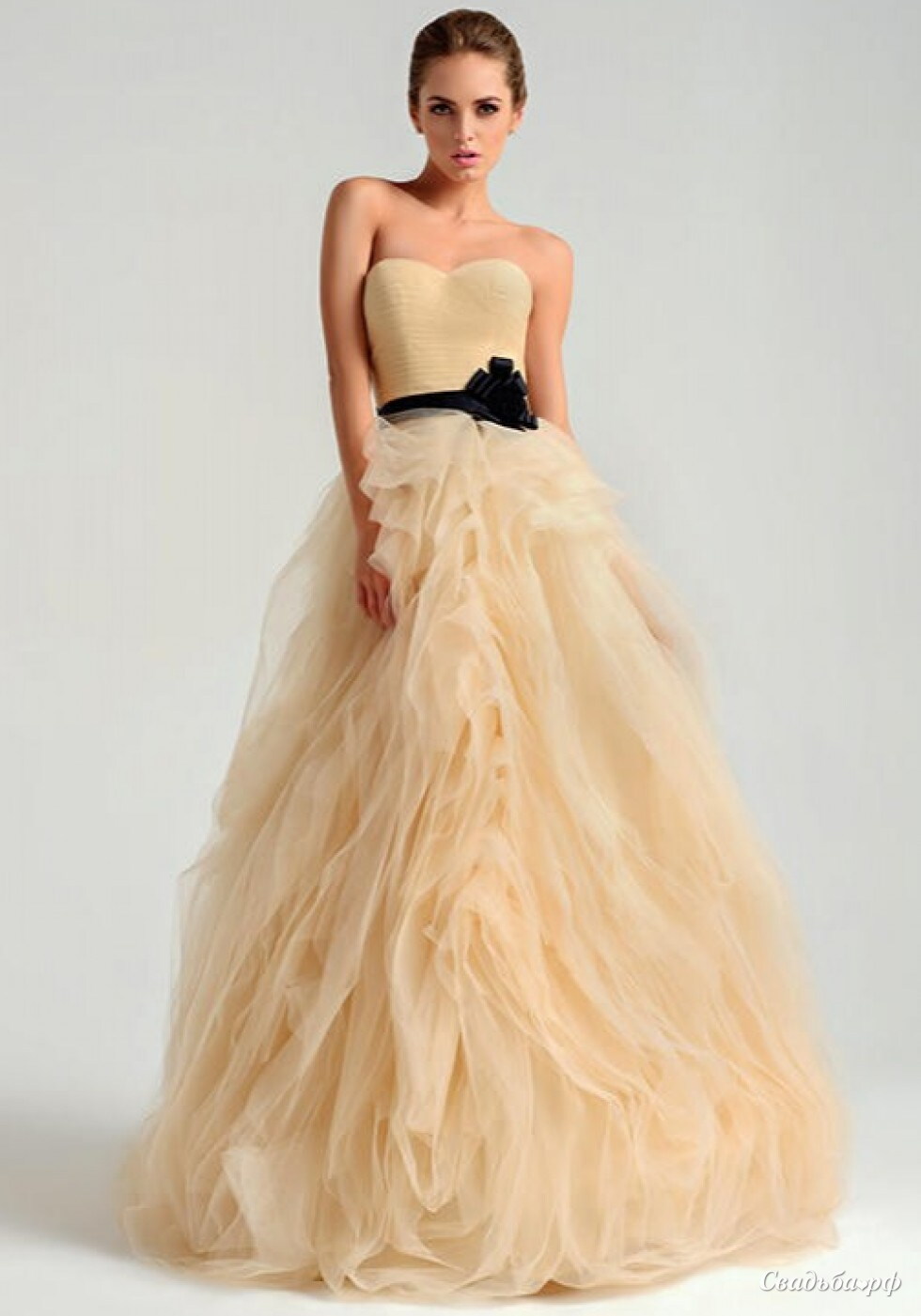 Восхитительной красоты вечернее платье, похожее на пену морской волны. Изумительный кремовый цвет подчеркнут шикарным черным пояском.