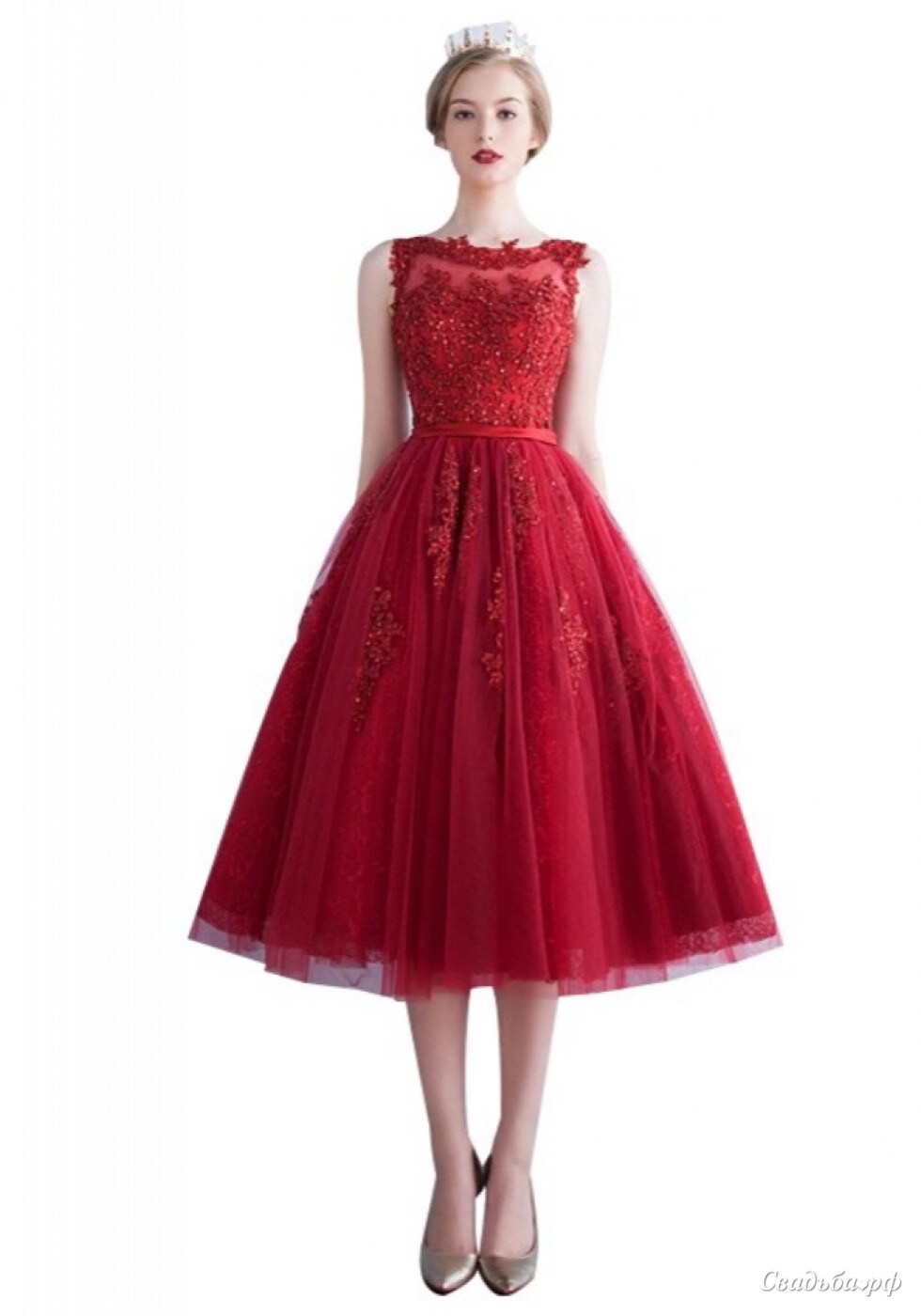 Классическое короткое вечернее платье. Лиф выполнен в форме маечки. Спинка платья закрыта и декорирована пуговичками. Верхний слой тонкого фатина расшит красивым французским кружевом. Кружевные аппликации расшиты пайетками, что придаёт платью легкое мерцание.