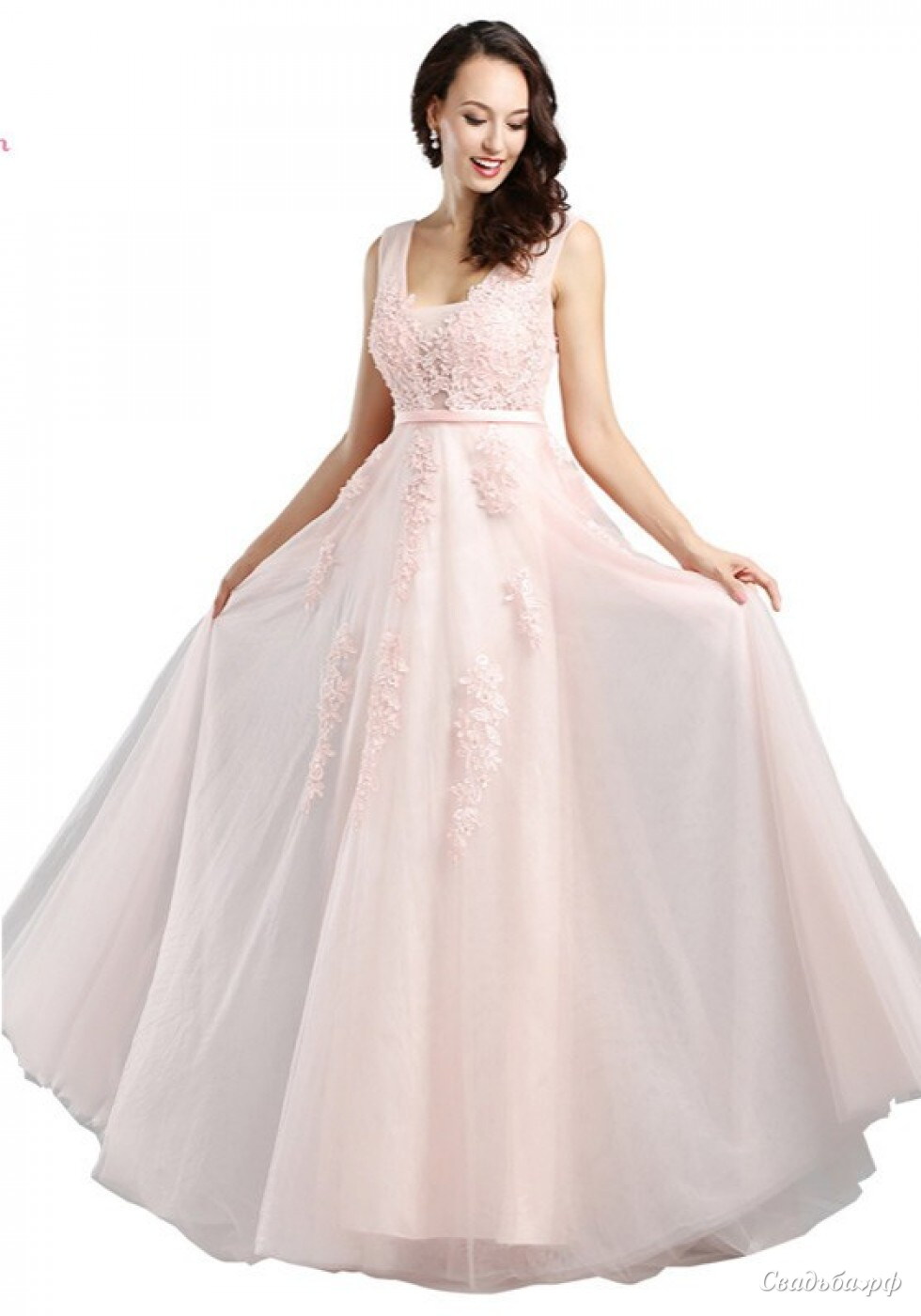 Это легкое и изящное вечернее платье должно быть в гардеробе у каждой девушки. Платье сделано из легкого фатина, расшито дорогим французским кружевом. Благодаря изысканному блеску пайеток, платье имеет легкое мерцание и торжественный вид.