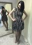 Изящное короткое платье с кружевным орнаментом. Платье имеет идеальное сочетание цветов, бежево-кремовый цвет покрывает плотное черное кружево. Платье выглядит эффектно. Хорошо садится по фигуре, держит и не теряет форму.