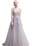 Платье из легкого шифона и фатина благородного серого цвета с лавандовым отливом. Расшито богатыми кружевными аппликациями и декорировано жемчугом и изящными пайетками.