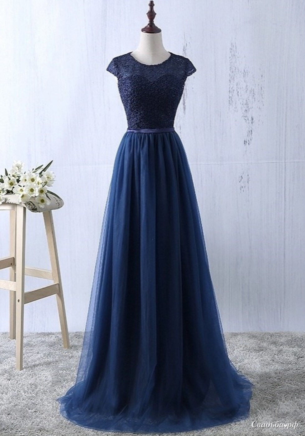 Вечернее платье глубокого насыщенного синего цвета. Юбка выполнена из легкого фатина.
