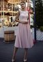 Легкое изящное платье. Юбка платья выполнена из мягкого и комфортного еврофатина. Топ платья украшен кружевом и мерцающими пайетками.
