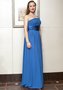 Элегантное вечернее платье в пол. Асимметричный лиф наискосок декорирован мелкой тканной складкой, линия талии выгодно подчеркнута широким атласным поясом. Юбка струится в пол мелкими строгими складками. Наряд поможет в создании классического, завораживающего своей простотой образа. В дополнение идет комплект съемных бретелек.